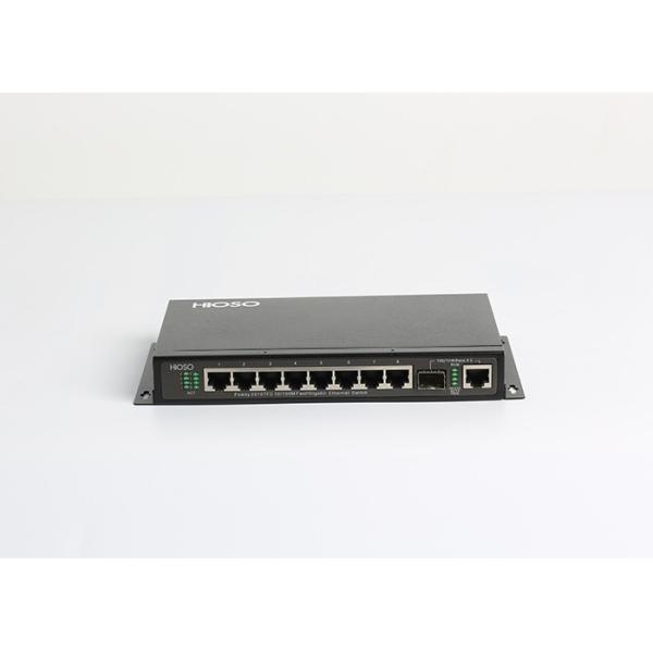 HiOSO Foway2310TFC series 10 ports 100M/1000M Security Industrial Ethernet switch, supply 8 10/100M RJ45 ports, 2 1000M Combo(100M/1000M SFP port and 10/100/1000M RJ45 port) uplink. SFP ports support hot swap. It supports to work with fiber switches, fiber media converters, and other end devices with fiber port. It supports HD video flow transmission; support to establish redundant back bone ring type network; apply to security system, electric power system, and traffic system requirements.
